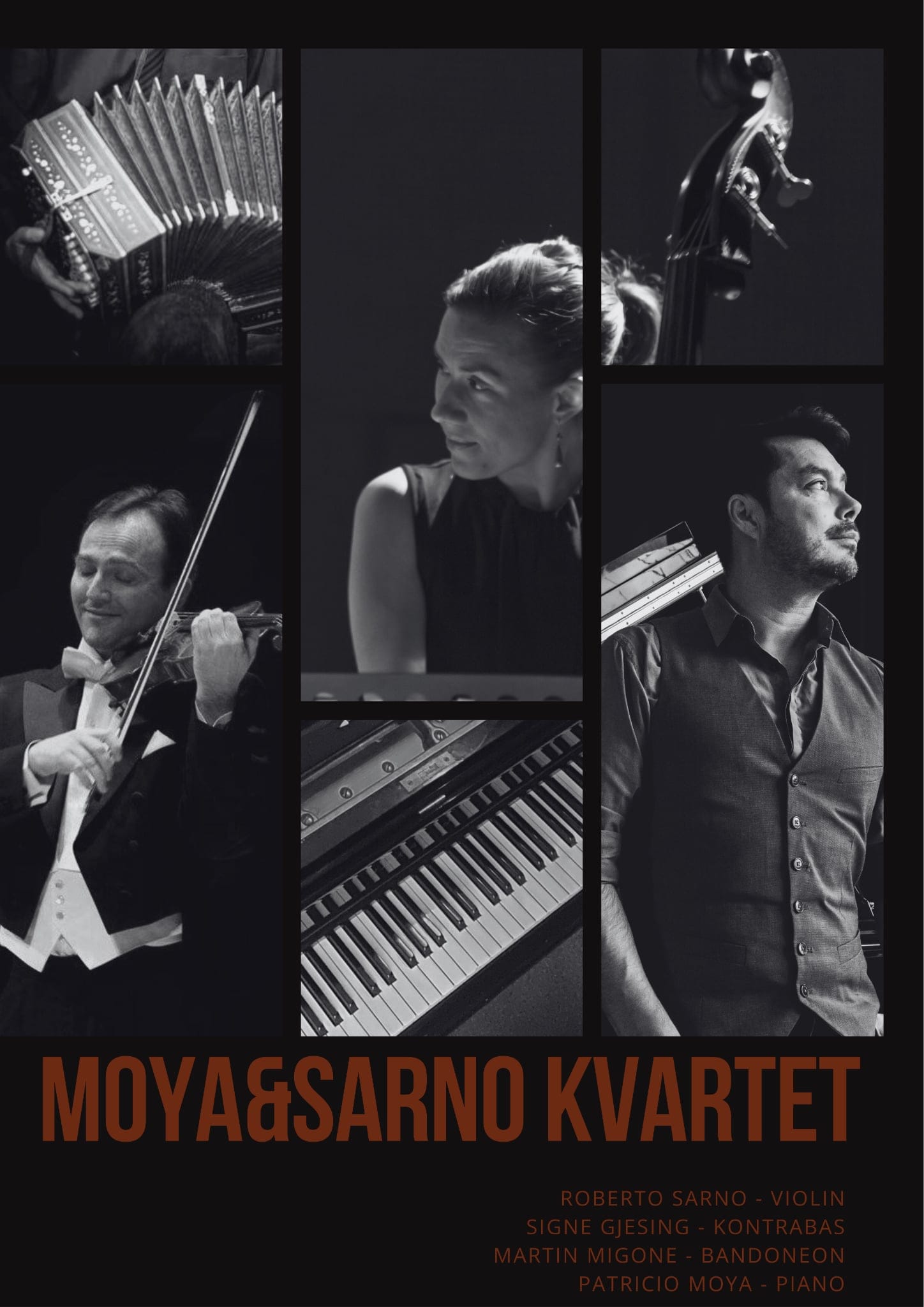Moya & Sarno Quartet—Roberto Sarno, Martin Migone, Patricio Moya, and Signe Gjesing—invite the listener into a rich sonic landscape where traditional tango meets original composition. Their music breathes with the soul of Argentina, infused with a deeply personal artistic vision that unfolds into a sound both passionate and irresistibly danceable.